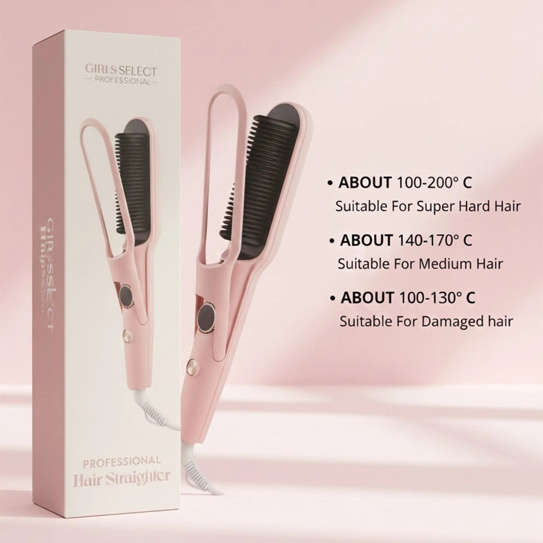 The Girls Select Professional Straightener is designed to deliver sleek, shiny, salon-like straight hair from the comfort of your home. With advanced ceramic bristles and adjustable LCD temperature control, it ensures even heat distribution while minimizing heat damage.