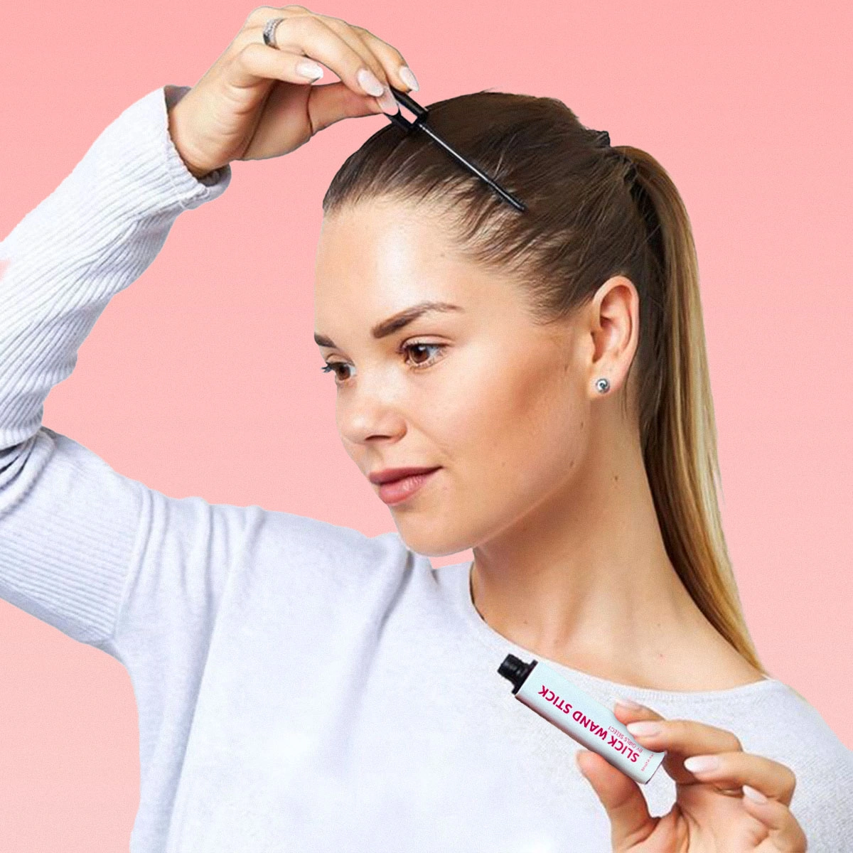 2️⃣ Lock the hair with slick wand stick